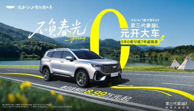 备选1:大6/7座空间自由选!豪越L春日吉利价8.99万元起,还可叠加5年0首付或7年超低息!备选2:大6/7座中型SUV 8.99万起售!更享5年0首付低息/7年超低息二选一!豪越L掀桌子了!4月,吉利汽车旗下大6/7座中型SUV——第三代豪越L限时推出“5年0首付低息/7年超低息”等多项超值购车权益,春日吉利价8.99万元起,抢先开启黄金春日购车季!作为10万级唯一提供大6座/7座可选的中型S