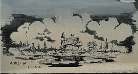 不知什么时候房顶上的避雷针被挂上了小旗子,烟囱里也冒出了几根头发丝状的炊烟,一旁的衬托框也被好多手指头划上了痕迹,经过好多次的修改,最终就改成了这个样子。
