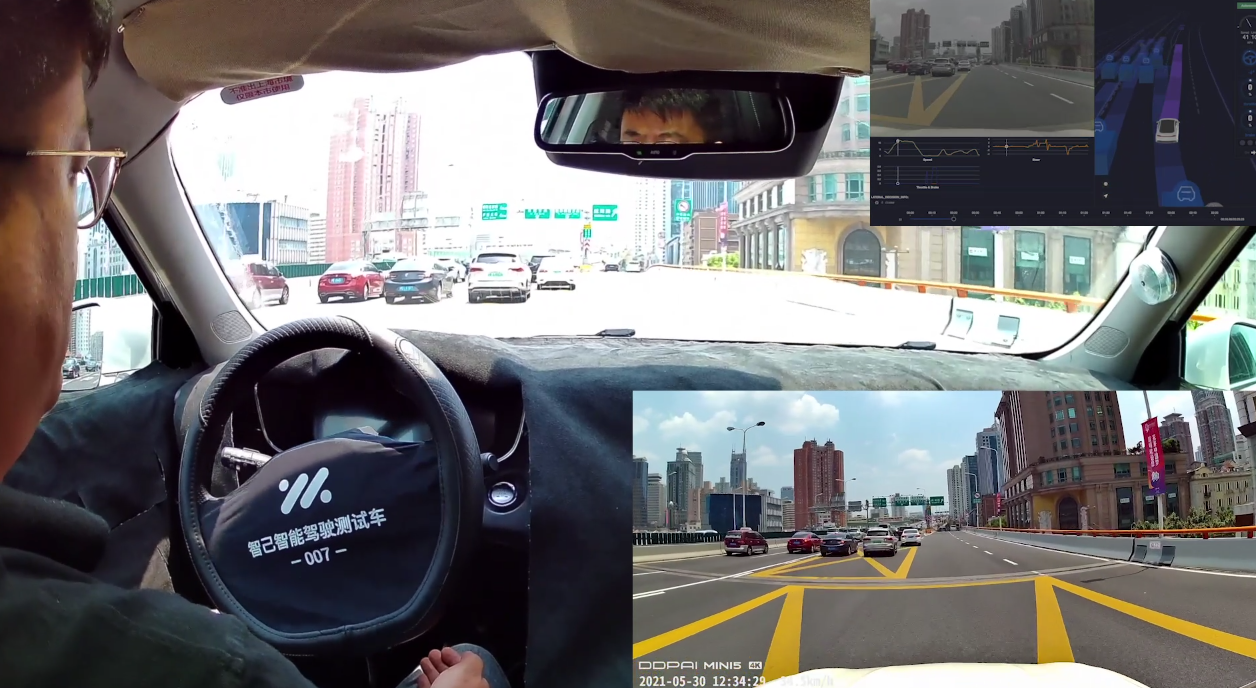 本次智己IMAD智能驾驶系统体验采用工程测试车辆,路线自威海路上汽集团总部出发,经茂名北路、延安高架、内环高架、南北高架,最终抵达威海路,全程共计21公里,体验时间为40分钟。