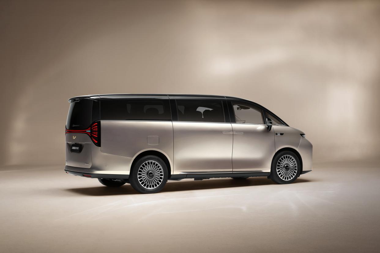 从公布的官图来看,银河V900在设计上充分彰显了高端MPV的豪华气场。引人注目的是其首次采用的专属“天马”车标,巧妙融合“飞翼”与“天马”意象,传递“速度、力量、自由、正义”的寓意。整体造型借鉴经典豪华品牌的设计思路,直观凸显新车的高端定位。