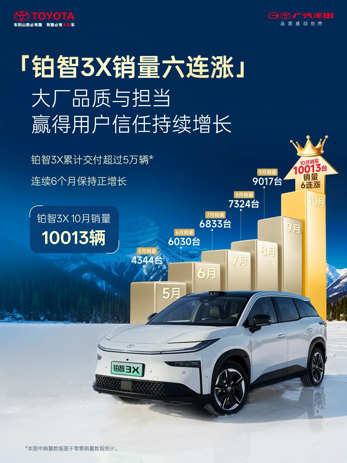 而此前已获市场检验的铂智3X,更是将激光雷达首次打入15万以内。这不仅是广丰在新能源领域真正意义上的首张“战帖”,更是基于很多用户“想体验智驾但预算不足”的深刻理解与应对。市场也给出了最直接的反馈——10月单月销量破万,累计销量已超5万辆。
