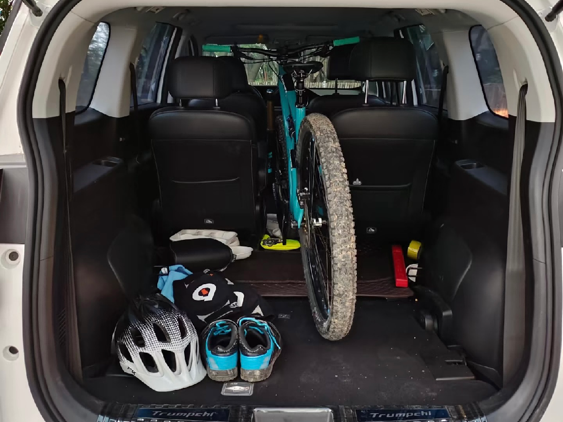 这种“不将就”,更延伸至空间的全能应变上。即便是七座满员,后备箱依然为行李留足了余地,从容应对短途出行。而当出行人数不多时,它的“王牌”空间灵活性便展露无遗。第三排座椅能完全隐藏式翻折进地台,瞬间拓展出一个1100L的纯平空间。婴儿车不用折叠,年货礼品随意堆放。有M6车主分享,折叠第三排后,他甚至直接放入了一辆山地自行车,并感叹:“传祺M6是最适配我的生活。”这种“能坐人能装货”的多变能力,正是其实用主义的精髓。