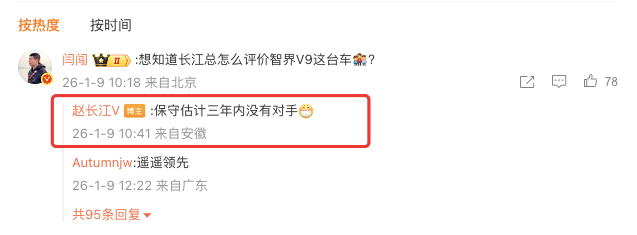 业界分析认为,智界此番引入赵长江,主要看重其在高端新能源品牌运营、特别是MPV产品成功打造方面的系统化经验。目前,智界旗下已拥有S7、R7两款车型,而其首款旗舰MPV车型——智界V9已由华为常务董事余承东宣布将于今年春季亮相。值得关注的是,赵长江在1月9日曾转发余承东的相关微博并为V9预热,其互动以及“保守估计三年内没有对手”的评论,在当时已引发外界对其角色变动的猜测。