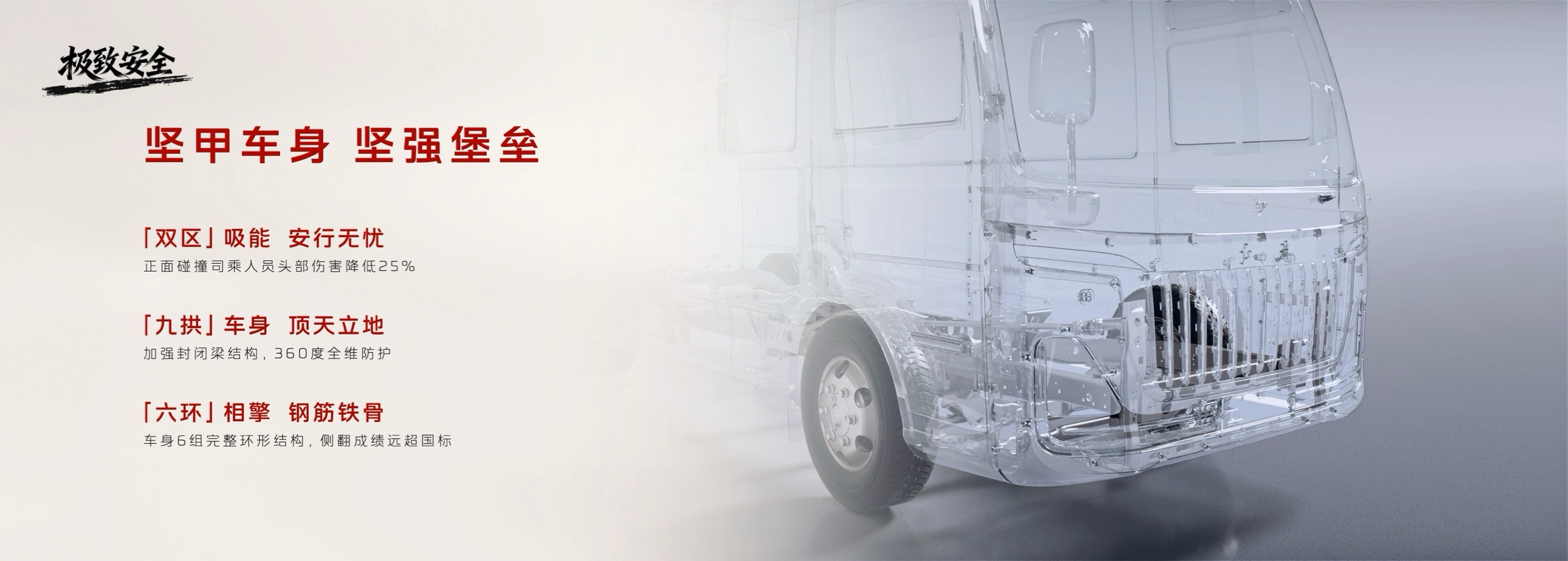 安全是永不妥协的底线。该车采用独特的“九拱六环”坚甲车身,是同级唯一满足《客车正面碰撞的乘员保护》强制标准的车型。更关键的是在主动安全上的超前标配:全系标配ESC+eBooster核心制动系统,提升操控稳定性与避险能力;并行业首发应用了针对大车优化的液压制动AEBS(自动紧急制动)系统,通过融合感知降低误报,制动策略更平稳,直接回应了营运车队对复杂路况安全性与乘客体验的双重需求。