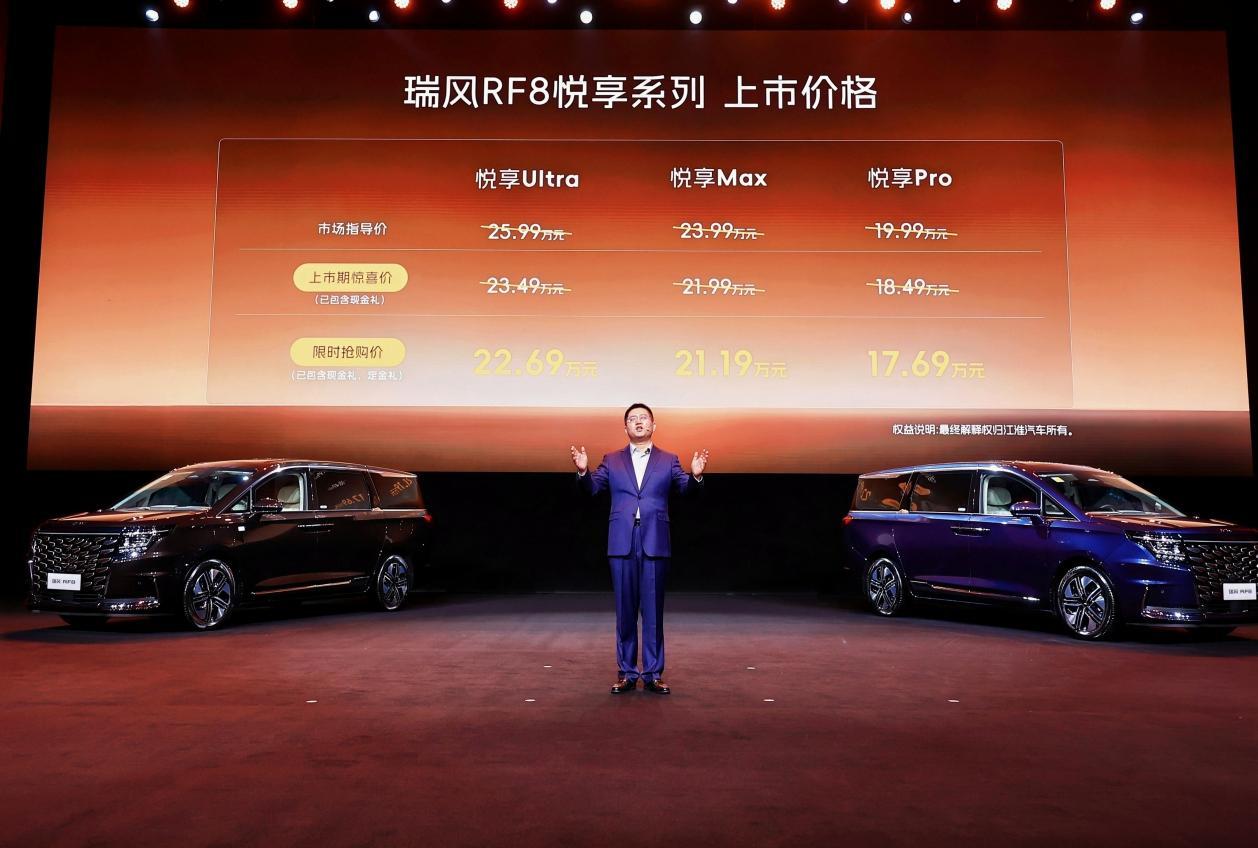 2026年3月28日,瑞风RF8悦享系列正式上市。新车共推出Pro、Max、Ultra三款配置版本,限时抢购价17.69万元起。在品牌成立25周年之际,瑞风以这款车作为献给百万用户的“深情家书”,不仅承载着对MPV品类的深刻理解,更回应了新时代用户兼顾事业与家庭的双重期待。