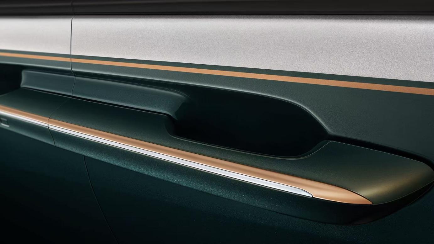 于外观细节处,世纪CENTURY更享专属淬金华彩纹饰,以古法淬金工艺为灵感凝练出独特色泽与细腻质感,全车专属金标辉映,搭配门把手等处施以精致金色饰条点缀,于方寸间勾勒豪华轮廓。织金华盖轮毂采用高级科技灰喷涂工艺,轮毂形面从中心缓缓铺展,与车身纹饰形成呼应,尽显名门气度。