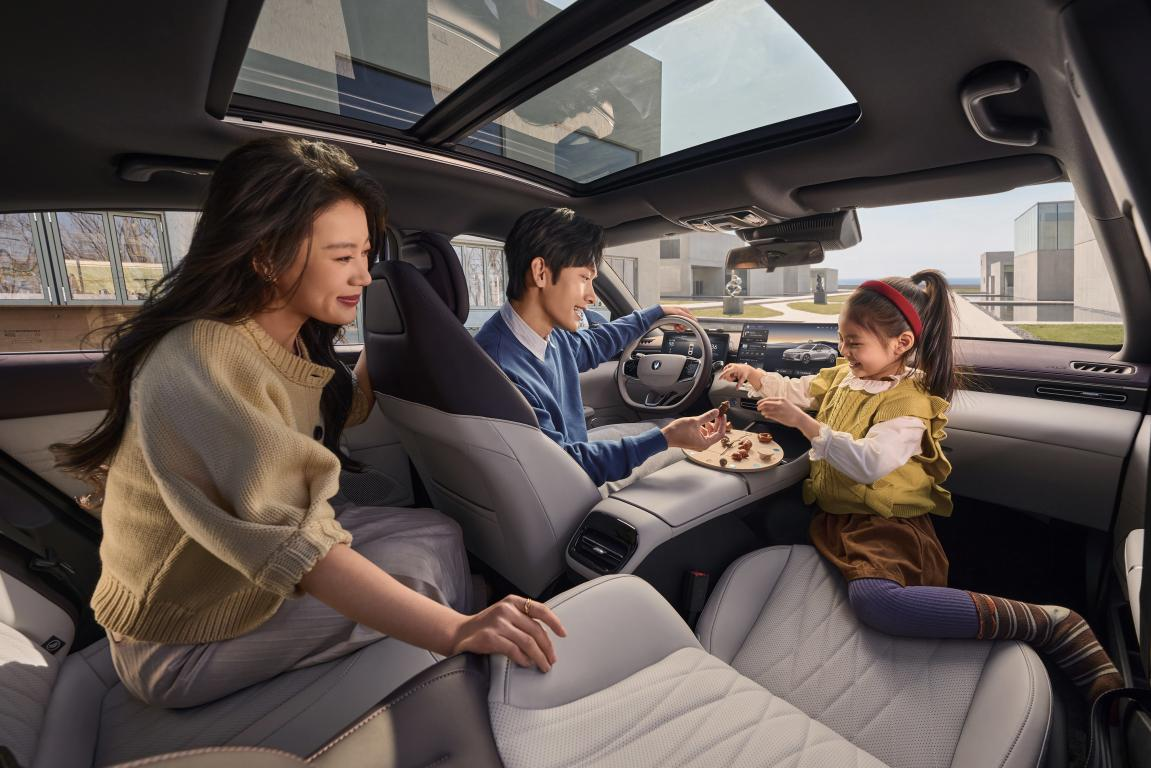 智能便捷的用车体验之外,车内空间与驾乘舒适感同样诚意拉满。新车车身尺寸达 4785×1840×1460mm,2765mm 超长轴距, 后排座椅横向宽度 1334mm,500L 后备箱拓展后可达 1250L,乘坐 空间舒适自在;配备愉悦驾乘 2.0 舒享座椅,支持前排通风加热;此 外,新车全系标配车载冷暖箱、整车超 60%大面积软包,尽显舒享质感。