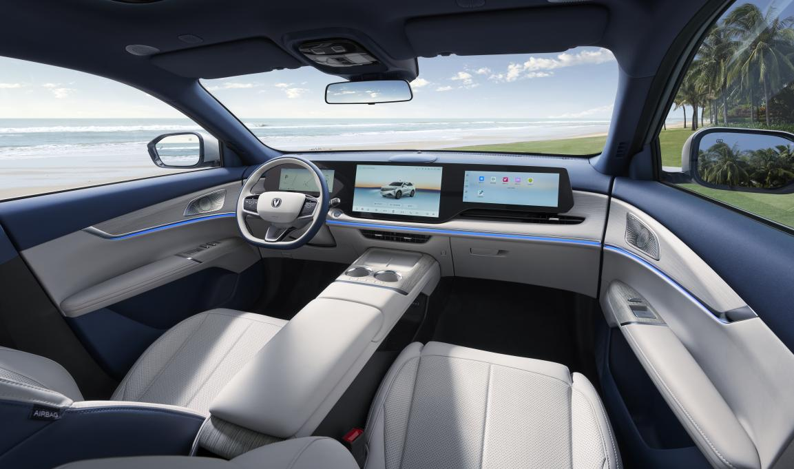 安全,是长安汽车始终坚守的底线。主动安全方面,新车搭载 21 项天枢智能安全配置,实现前、侧、后全域护航。依托 540°高清全景影像、AEB 自动紧急制动、FCTB 前方横向紧急制动等主动安全 技术,实现从全向预警、主动制动到车道守护的全域护航;今年三季 度全系将通过 OTA 远程升级爆胎稳行系统,实现高速爆胎无偏航、 无侧滑。被动安全上,搭载“5 纵 5 横安全结构”中国十佳方舟笼车 身,越级标配 7 安全气囊防护,新增前排中央气囊,填补传统双侧气 囊盲区。