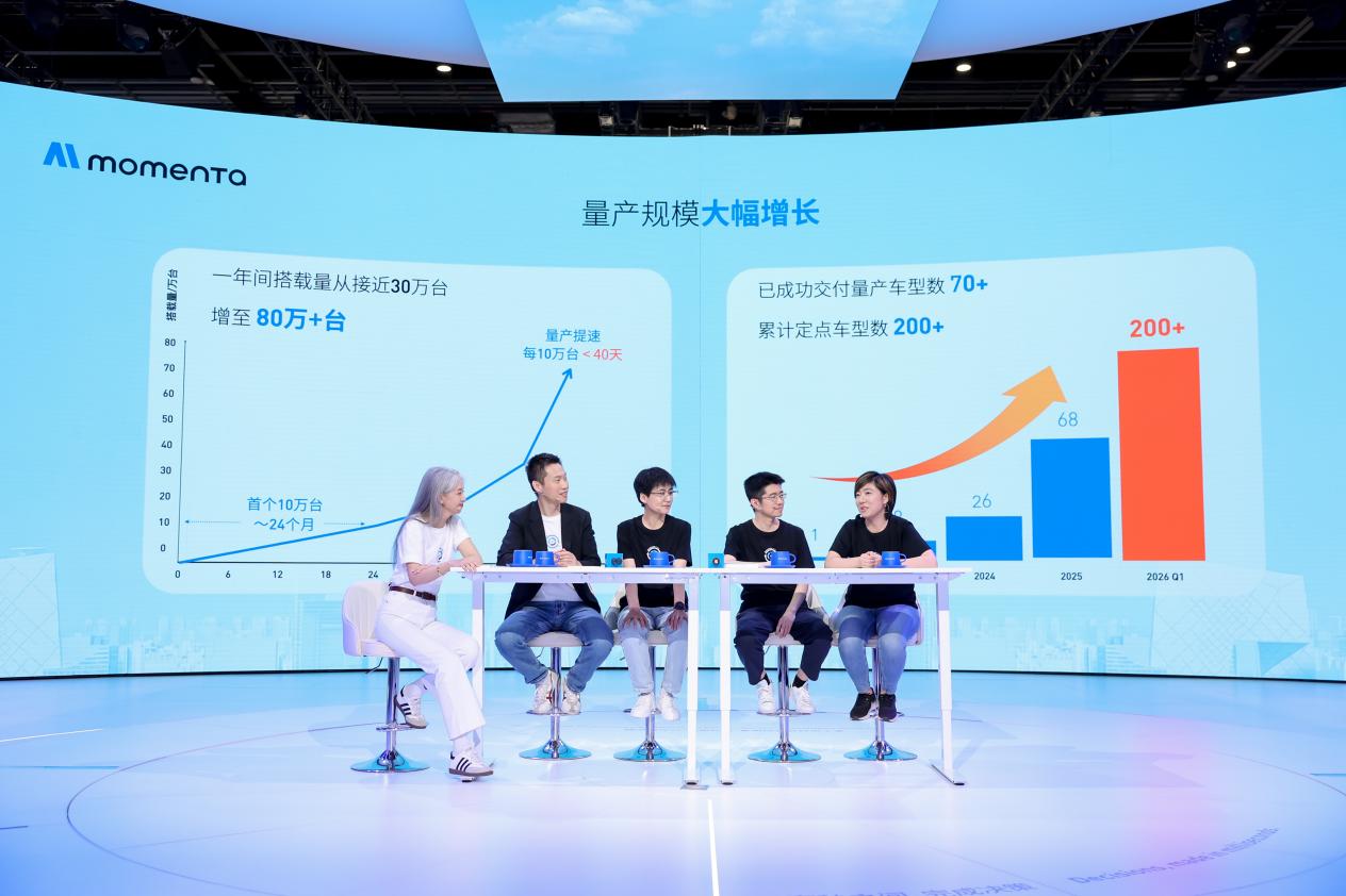 Momenta宣布,已成功交付超过70款量产车型,累计定点车型数超过200款,量产落地覆盖十余个国家和地区。搭载Momenta系统的量产车辆规模已超过80万台,最快不到40天即可完成10万台交付。本届北京车展,有超过20个品牌,60余款车型搭载Momenta方案,包括梅赛德斯-奔驰、奥迪、宝马新发布车型。