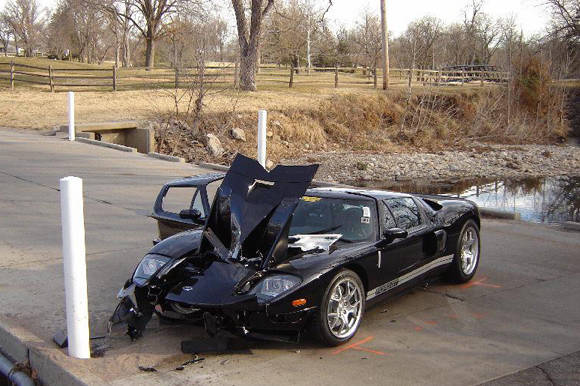 也许你并不知道,福特品牌也拥有一款经典的超级跑车——福特GT。这款车继承了赛车GT40的基因,5.4L V8发动机更是赋予了它奔跑的实力,0-100km/h加速时间仅3.6秒,极速可达328km/h。这样经典的车型撞毁只能用四个字形容:暴敛天物!