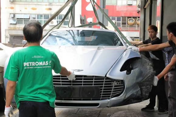 阿斯顿·马丁One-77全球限量77台,中国配额仅5台,国内售价4700万,其价格甚至超越了标准版的布加迪威航。这台One-77的意外是在香港发生,但是车辆本身是来自于深圳。从图中来看,这台One-77的左前方受到了严重的损伤,翼子板严重变形,前轴应已经断裂。4700万被撞散落在空中会是什么样子?心中不禁泛起了无限的遐想,庆幸的是车已经修好了。