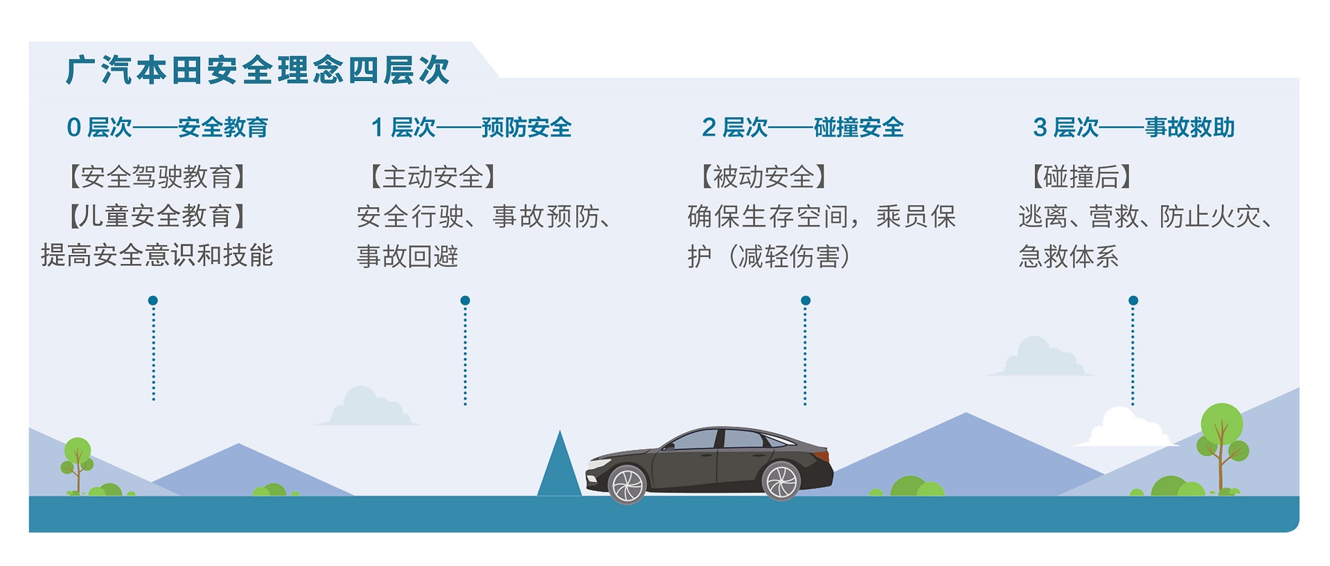 同样,作为此次合作的重要发起者,一直以来,广汽本田秉持“为了所有人的安全”的企业安全理念,以人为关注的中心,不但注重保护车内乘员的安全,也充分考虑对方车辆乘员、其他车辆乘员和行人的安全,以实现所有道路参与者的“安全共存”。“为了所有人的安全”理念包含四个层次,即0层次的安全教育、1层次的预防安全(主动安全)、2层次的碰撞安全(被动安全),以及和3层次的事故救助。