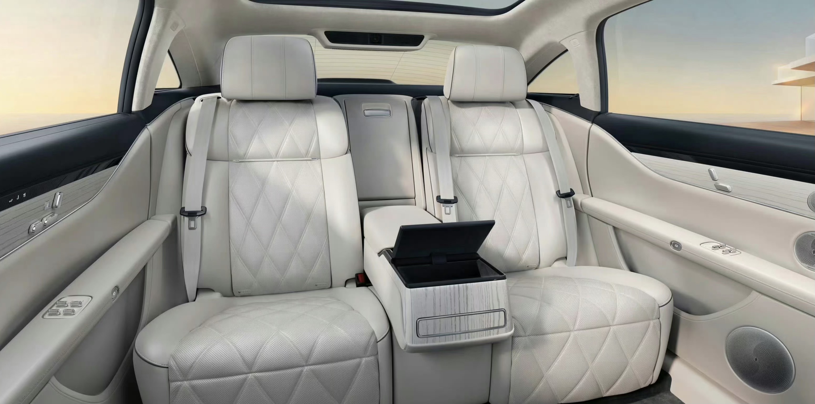 内饰部分目前官方仅公布了一张享界S9后排图片,没有介绍更多信息。但根据图片不难猜测,享界S9车内将对空间布局、选材、做工,以及色彩进行极致打磨。结合问界M9相关信息,不难猜测新车将会配备激光投影、后排冰箱以及标志性的鸿蒙座舱。而根据余承东与周鸿祎的展台互动信息,新车还将在隐私安全方面具备多种创新设计,为商务人士创造更加私密的后排空间体验。